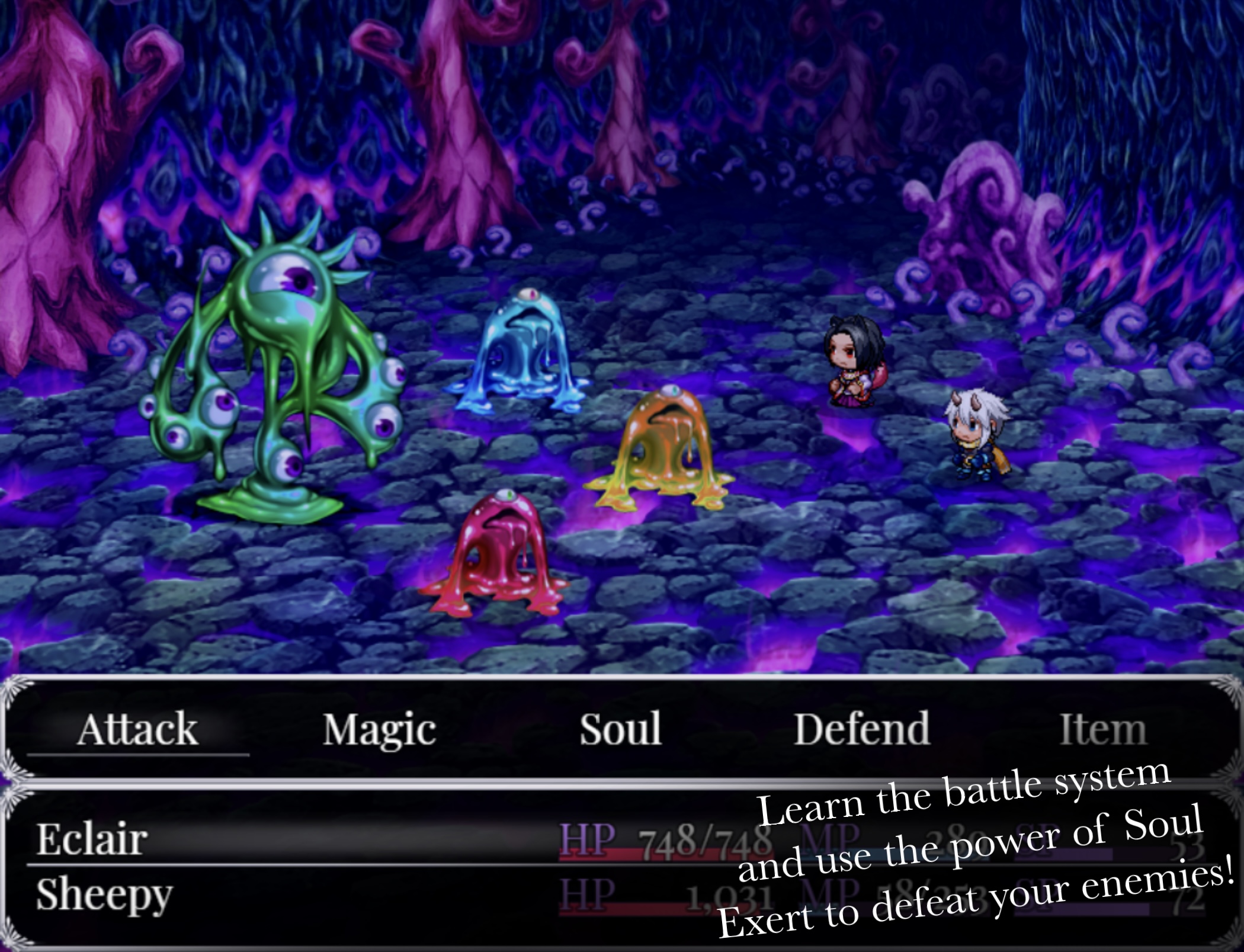Join Eclair the Mage and Sheepy the Rogue on a journey through Den Town and its surrounding areas in this short but sharp RPG! Adventure together and face the many monsters with your elemental magic and tricky skills as you get stronger in this unique party of two!